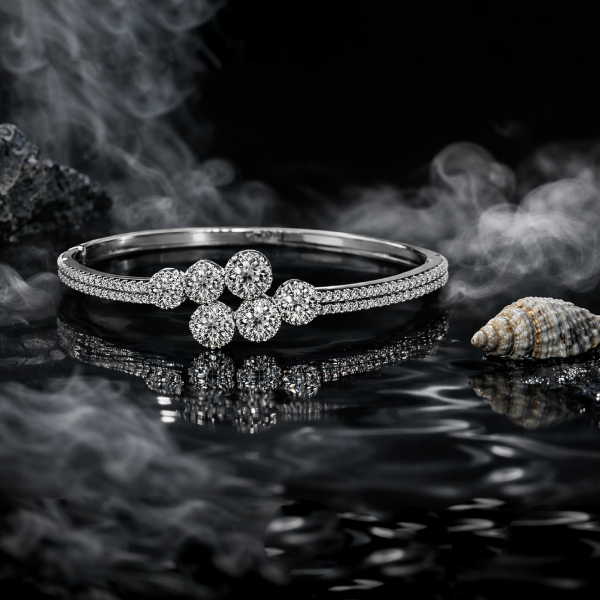 Elevate your elegance with this stunning silver tone American diamond floral bracelet. Designed with a delicate flower-inspired centerpiece and finely paved diamond detailing along the band, this bracelet exudes timeless charm and refined luxury.
