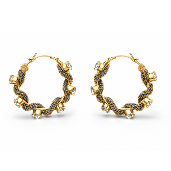 Turn heads with these glamorous gold finish crystal chain hoop earrings. Designed with an intricate twisted chain pattern and highlighted with sparkling crystal accents, these hoops offer a bold, luxury-inspired look perfect for modern party wear.
