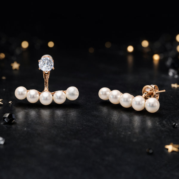 Add a touch of modern elegance to your look with these stunning rose gold pearl bar stud earrings. Designed with a sparkling cubic zirconia solitaire on top and a sleek row of faux pearls, these earrings create a classy yet contemporary statement.