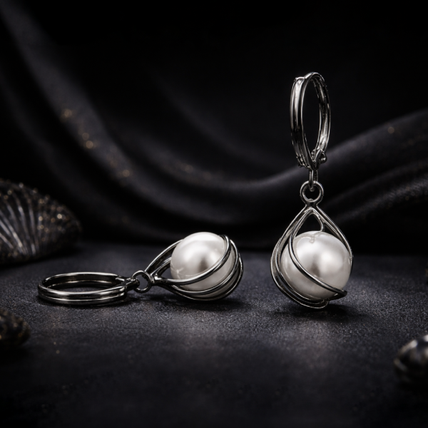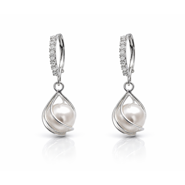 Add elegant charm to your party and festive look with these beautiful silver pearl drop hoop earrings. Featuring a glossy faux pearl set inside a modern wire swirl frame and crystal-studded hoop detailing, these artificial earrings create a stylish and graceful statement.