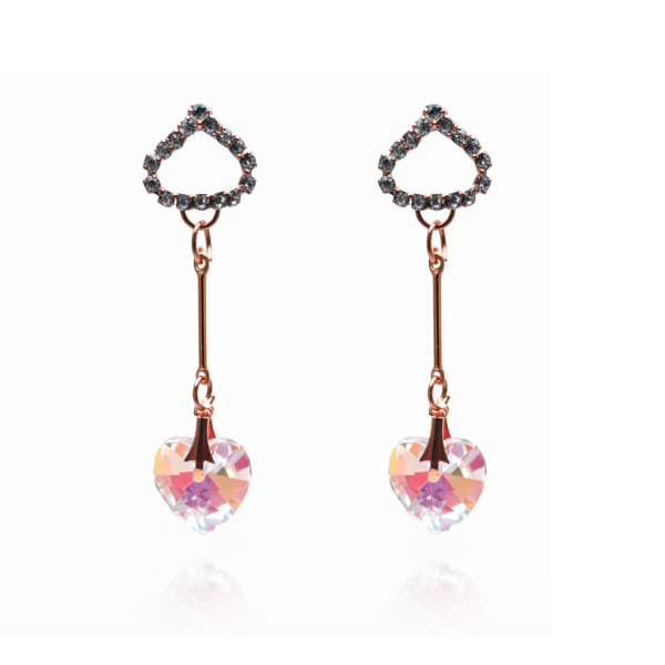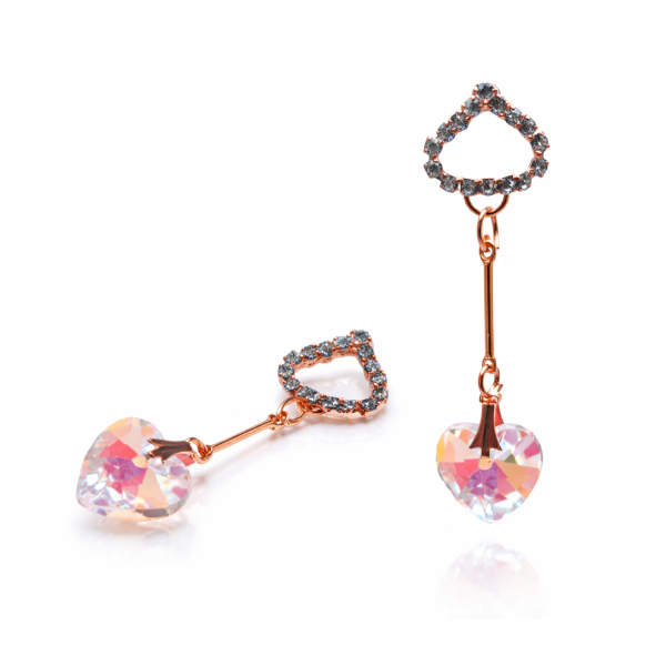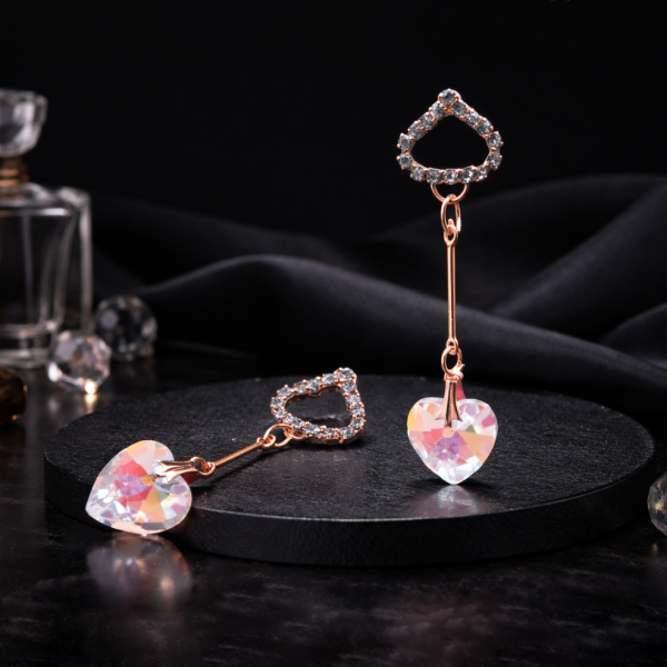 Add a romantic and glamorous touch to your party look with these stunning rose gold heart crystal drop earrings. Featuring a sparkling crystal heart pendant and shimmering CZ accents on top, these artificial earrings create a stylish and elegant statement.
