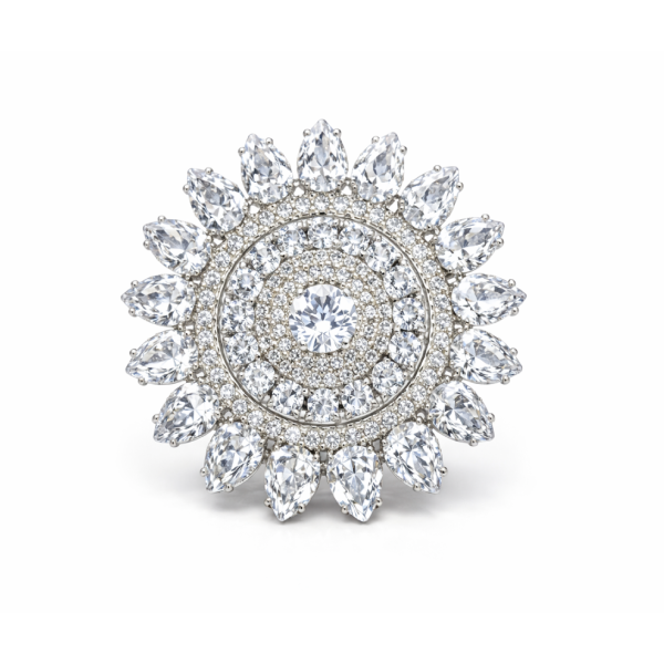 Add a touch of royal elegance to your look with this stunning crystal floral statement ring. Designed in a beautiful flower-inspired pattern, this ring features sparkling high-quality crystals arranged in a radiant circular design.